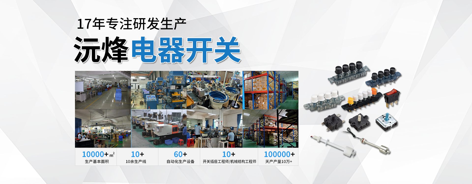 主要生產(chǎn)浮球開(kāi)關(guān)、接近開(kāi)關(guān)、琴鍵開(kāi)關(guān)、旋轉(zhuǎn)開(kāi)關(guān)、微動(dòng)開(kāi)關(guān)、船型開(kāi)關(guān)、拉線開(kāi)關(guān)以及接線座等系列產(chǎn)品。 -